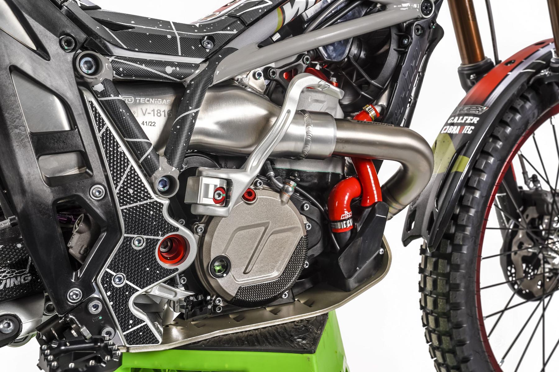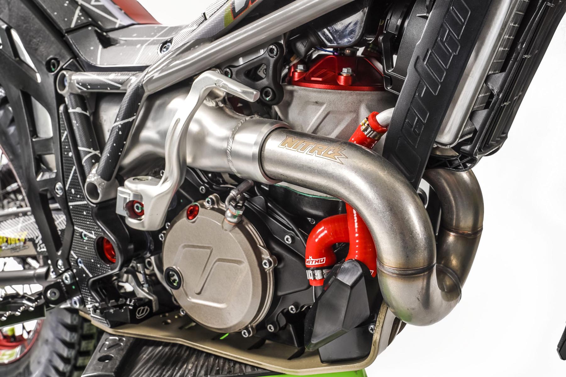 Die wichtigsten Verbesserungen an der RS sind nicht motorbezogene Innovationen, da der Motor aufgrund seiner bewährten Zuverlässigkeit keinen größeren Modifikationen unterzogen wurde: Der mit elektronischer Einspritzung betriebene Motor der Nitro hat sich als einer der leistungsstärksten in jedem seiner verschiedenen Hubräume erwiesen. Er verfügt über einen abnehmbaren Kupplungsdeckel, eine der großen mechanischen Innovationen, die in letzter Zeit getestet wurden.