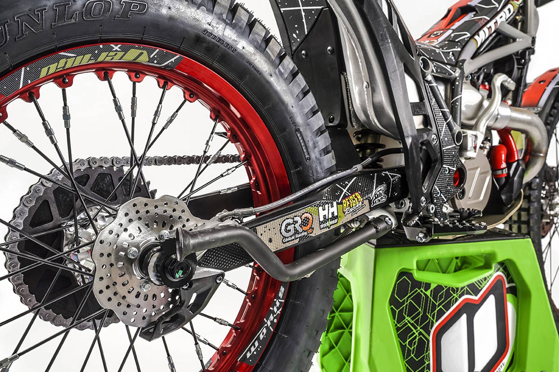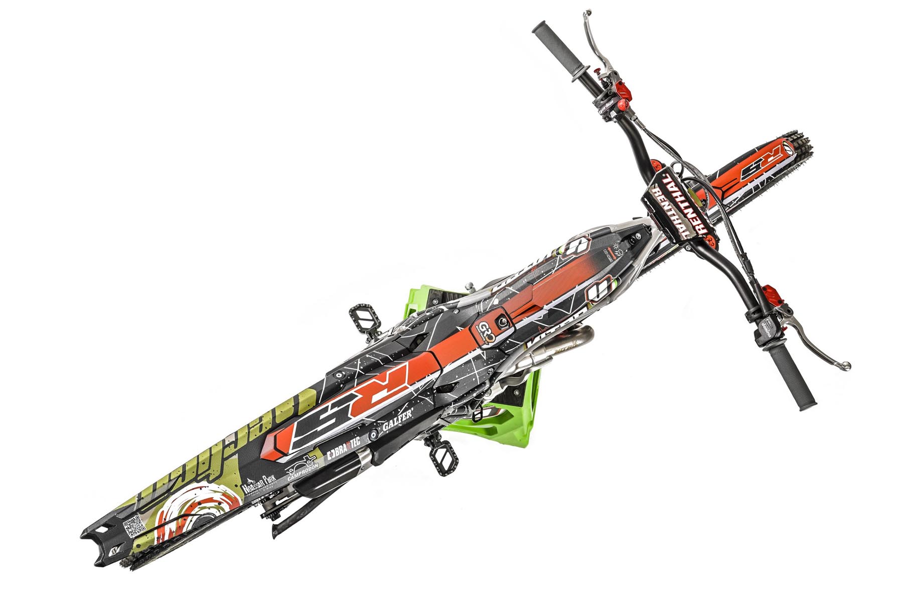 Die Ausstattung dieser Vertigo Nitro RS und RSR ist einfach umwerfend. Die Schlangenhaut verleiht nicht nur einen Racing-Look, sondern schützt auch Schwinge, Gabel und Hilfsrahmen vor Kratzern und Stößen.