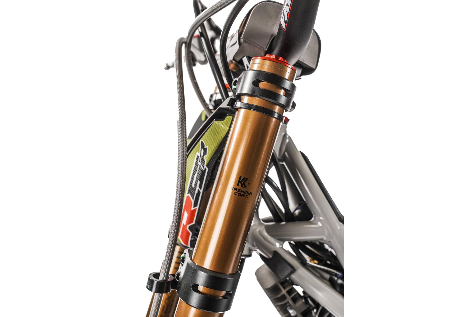 Und das ist noch nicht alles. Das Hauptmerkmal der neuen Modelle ist die Hinterradaufhängung. Der Zweiwege-Stoßdämpfer von Reiger (drei Wege beim RSR) liefert dank seines neuen, von Vertigo entworfenen Verbindungssystems, das eine der Schlüsselkomponenten für die Erfolge der letzten Saison war, eine überlegene Leistung. Nachdem es sich bewährt hat, wurde es in die Produktionsserie aufgenommen und stattet die neuen RS und RSR von Anfang an aus.