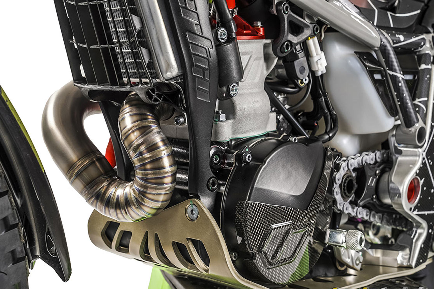 Passenderweise gibt es die neuen Nitro RS auch in einer „Racing“-Version – die Nitro RSR – mit bestimmten Elementen, die die RS-Leistung noch weiter verbessern: neue Tech Factory-Gabeln in exklusivem Kashima Gold, ein Auspuffkrümmer aus Titan und Kohlefaser Motorschutzbügel sowie das neue serien-exklusive Umlenksystem.